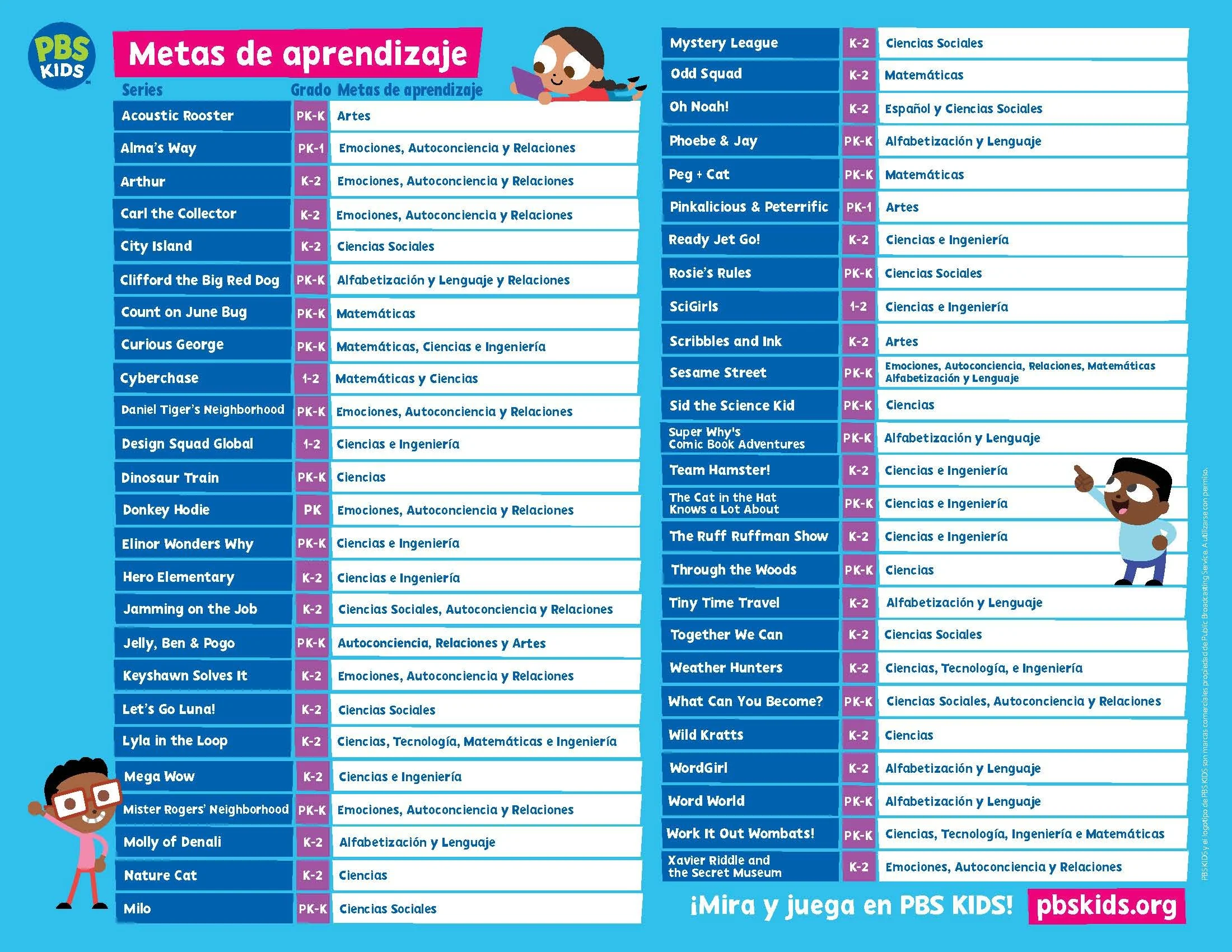 PBS y PBS KIDS ofrecen una variedad de programación, juegos y recursos educativos tanto en inglés como en español.